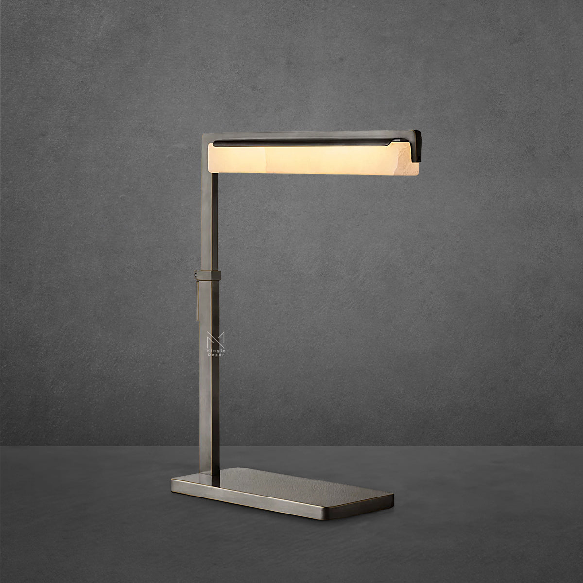Audubon captures the spirit of 1960s Italian minimalism, featuring a prism of alabaster mounted on a solid brass frame. The reticulated arm directs light precisely where it is needed. This collection by Joseph Jeup is both striking and understated, with elongated LEDs emitting a warm, candlelight-like glow that shines beautifully through the translucent stone.