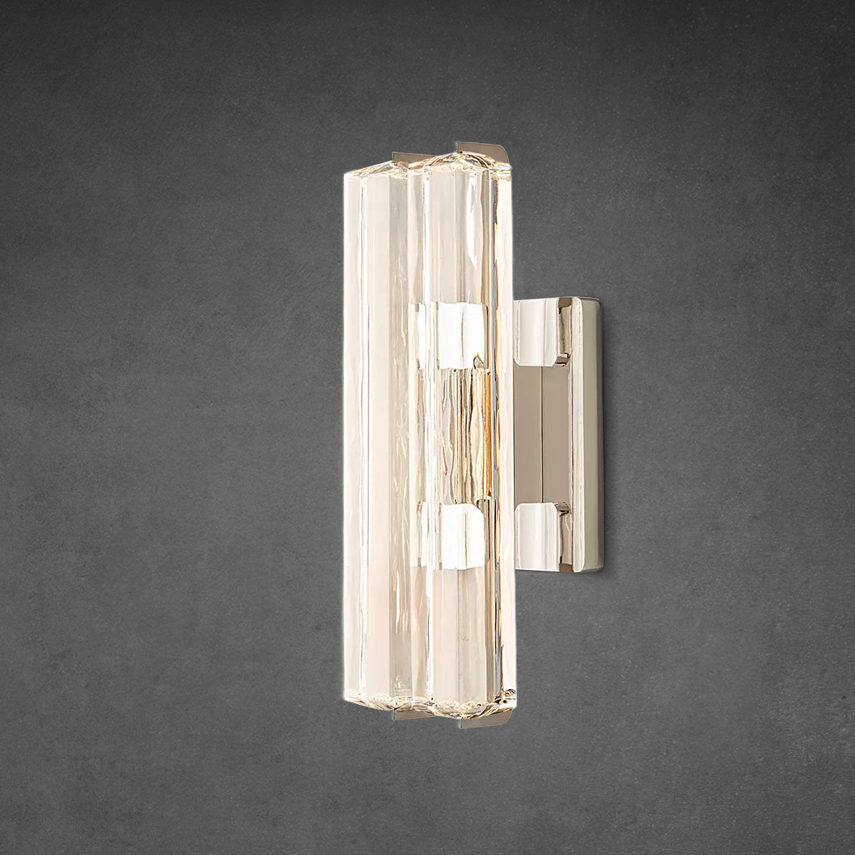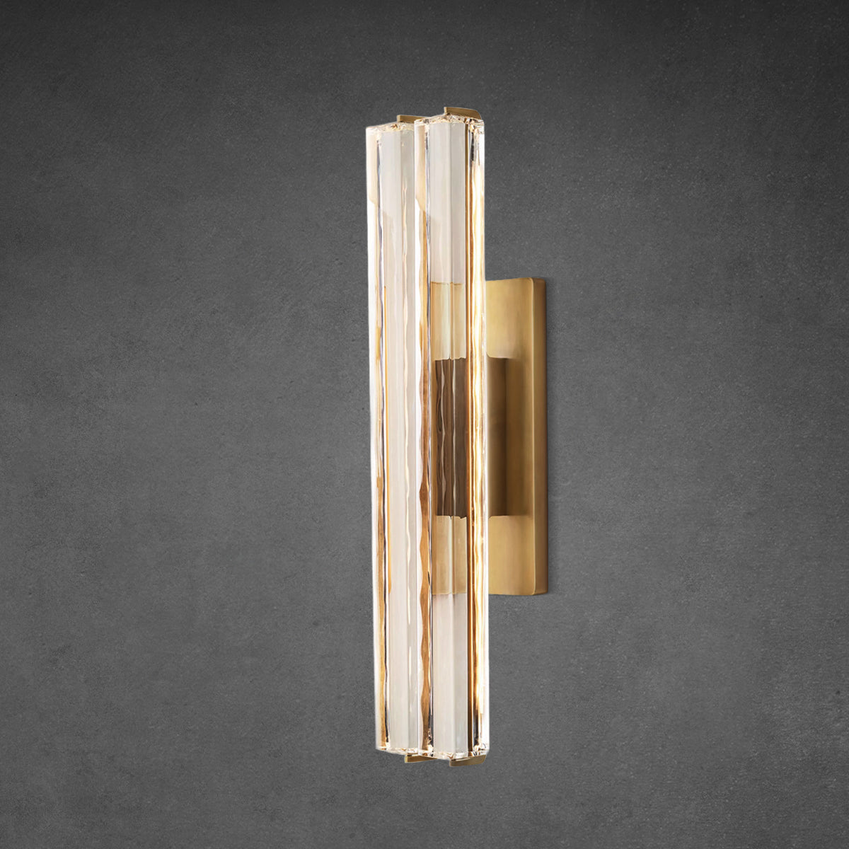 Capturing the spirit of 1960s Italian minimalism, Audubon appears to cascade from above with ten prisms of hand-polished K9 crystal on vertical brass drops. At once striking and restrained, the collection is the warmth of candlelight with elongated LEDs that shed beautiful light through the undulating texture of the glass.