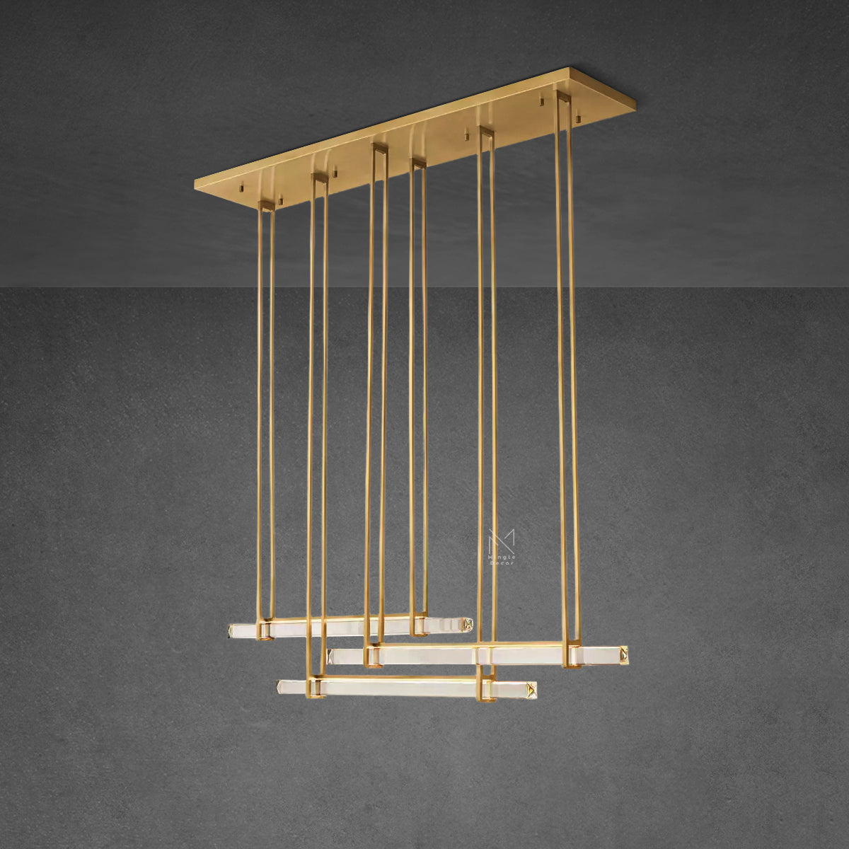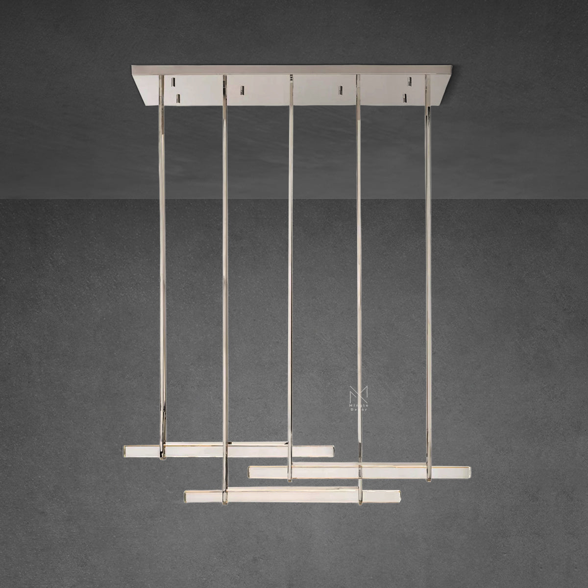 Capturing the spirit of 1960s Italian minimalism, Audubon appears to cascade from above with ten prisms of hand-polished K9 crystal on vertical brass drops. At once striking and restrained, the collection is the warmth of candlelight with elongated LEDs that shed beautiful light through the undulating texture of the glass.